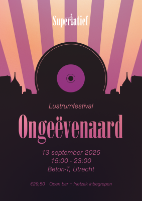 Het festival zal dit jaar plaatsvinden op het prachtige terrein van Beton-T in Utrecht! Van 15:00 tot 23:00 kunnen jullie hier genieten van drankjes, lekkere hapjes van de foodtruck en muziek van nader bekend te maken artiesten ;).